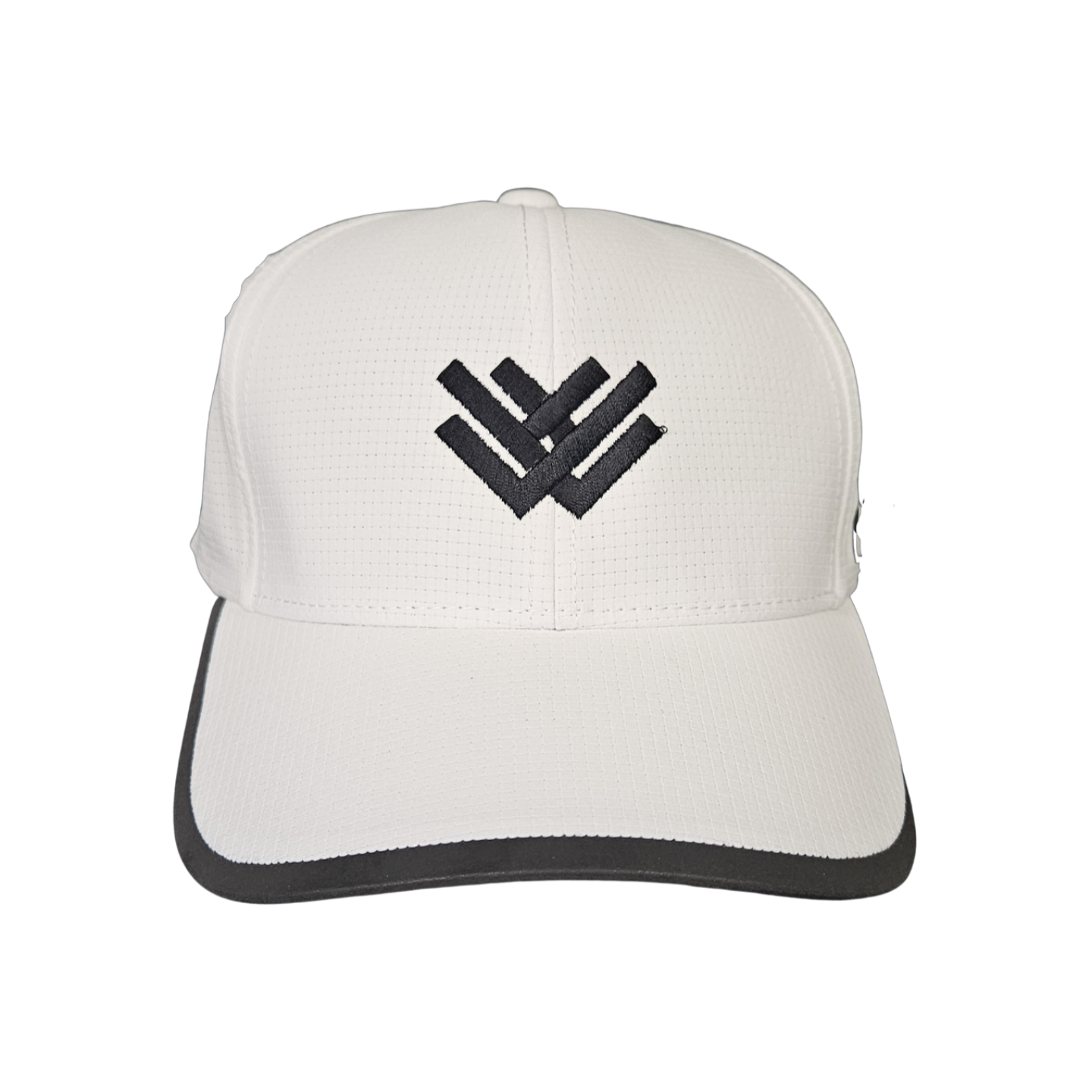 Premium white cap with pinhole woven mesh and black reflective trim on the bill has the Whiskey in the Wild